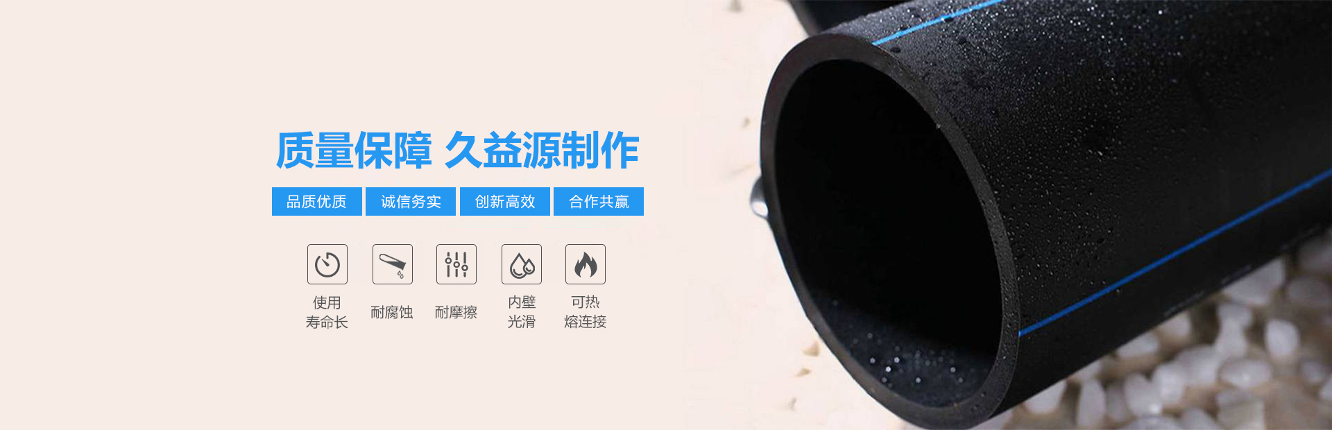 山東久益源新型材料有限公司,是一家專業從事聚乙烯(PE)管材研發、生產、銷售、施工等服務于一體的新型材料技術企業。多年來先后投資多家實體企業,主要生產車間分部于江蘇宿遷、山東濰坊、河北滄州、遼寧盤錦、山西晉中等先進的輕工業城市,公司現有員工20余人。其中高分子高級技術研發人員4名,車間技術工人10余人、材料銷售及服務人員10余人。